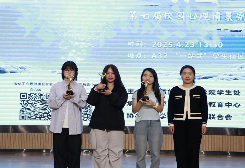 最后,参赛队伍和工作人员上台合影留念,安徽信息工程学院第七届校园心理情景剧大赛圆满落幕。本次大赛的成功举办,不仅显著提升了师生的心理健康意识,更在校园内营造了积极关注心理健康的良好氛围。参演学生和观赛人员反馈,通过剧目创作与表演观赏,他们掌握了实用的心理调适技巧,这将帮助他们以更健康的心态迎接未来的挑战。